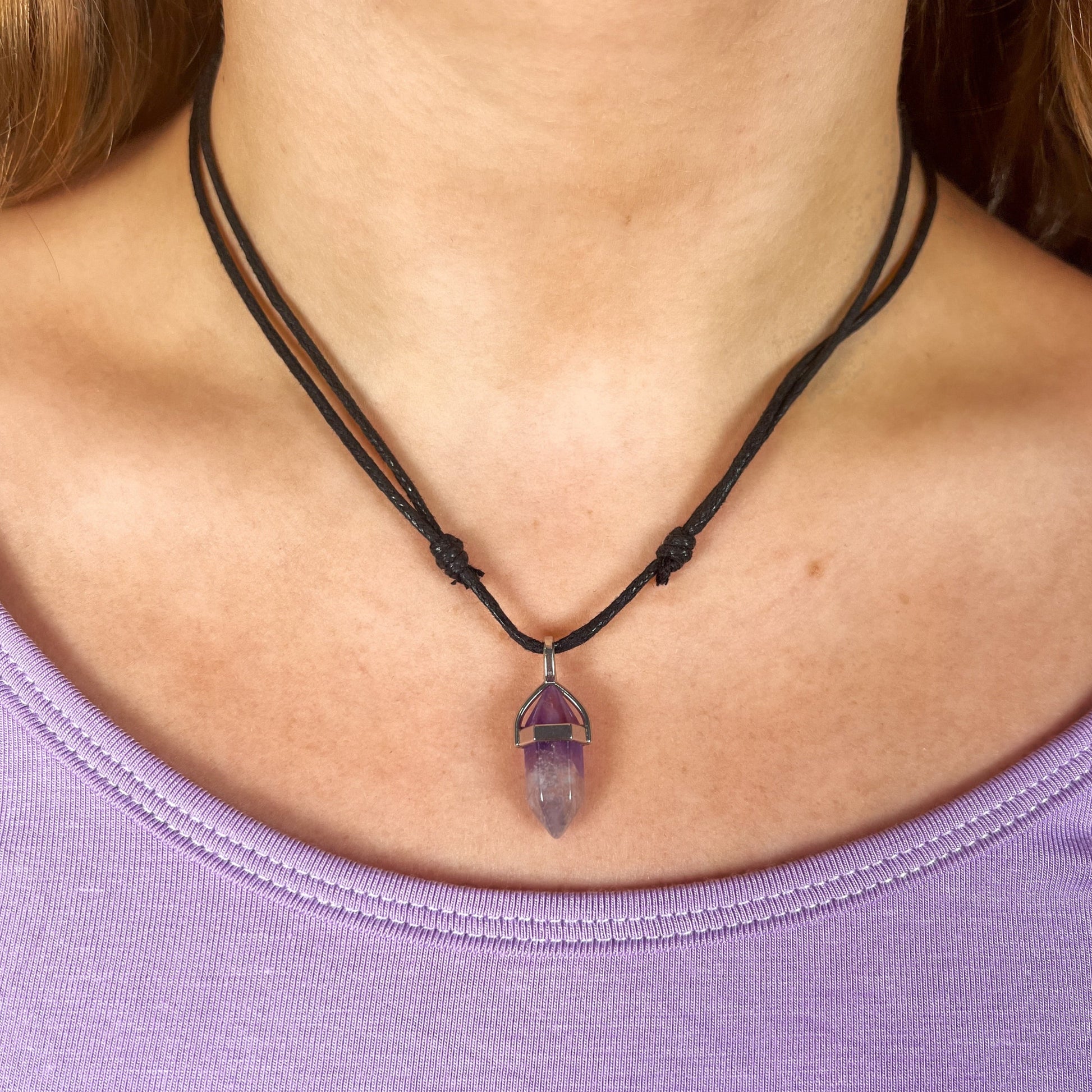 This Gemstone Pendant has been slip knotted onto an adjustable cotton necklace NOTE: Pendants may vary in colour. Some gemstones can be colour enhanced. This adds to the visual effect but does not change the gemstone properties or meanings.