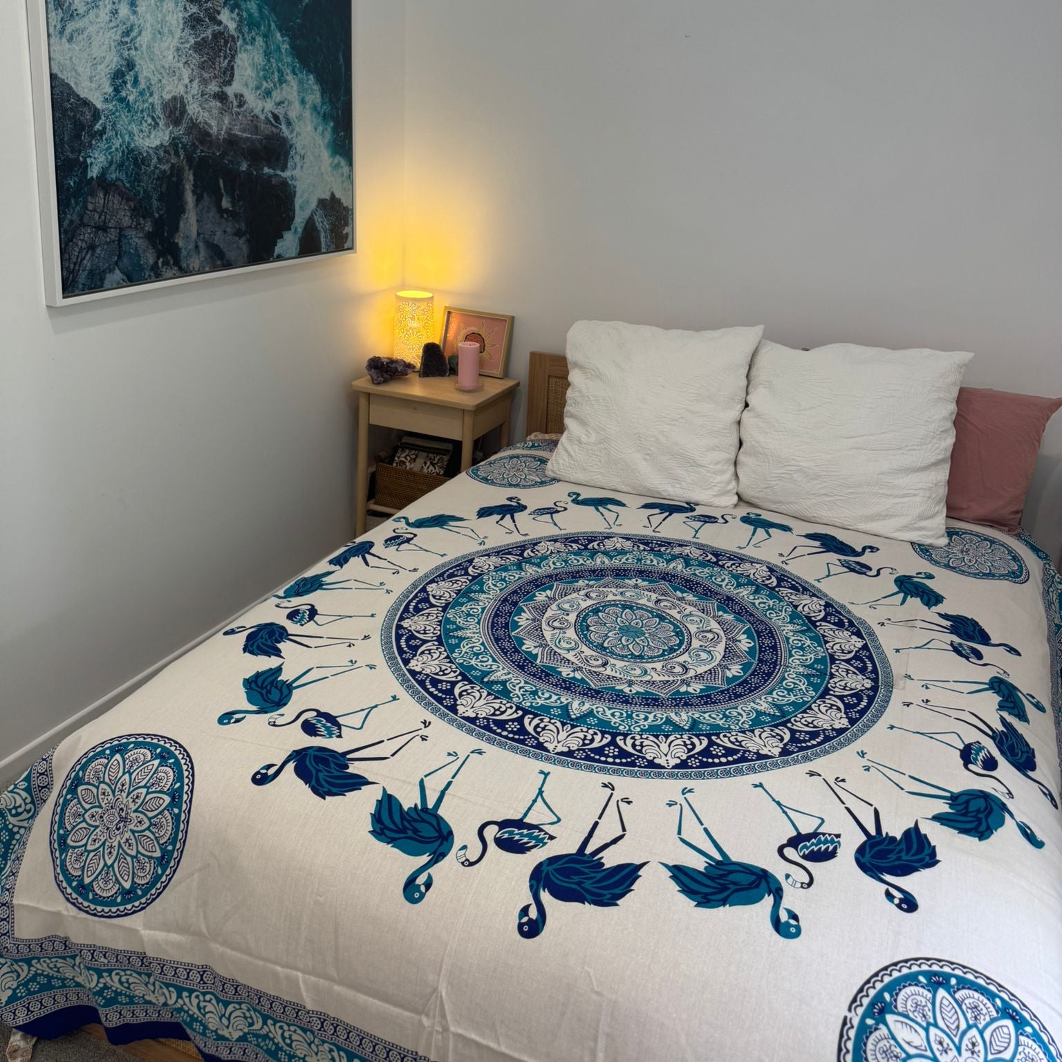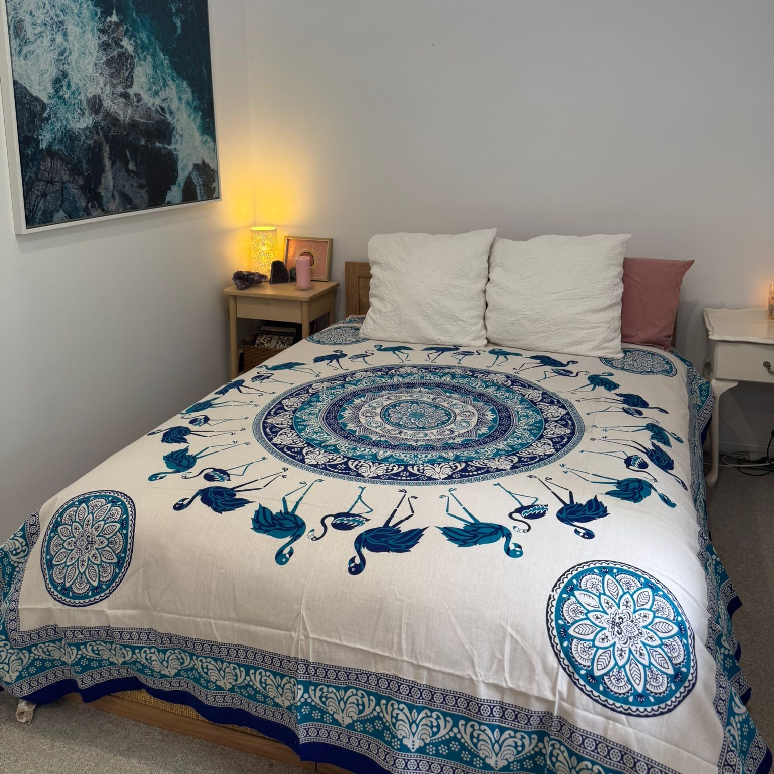 Made from Cotton, tapestries can be used as a wall hanging, a bed or couch cover, a table cloth or even a beach blanket. Size: Approx 2.5 metres x 2.75 metres. Cold machine wash. Note: This item will fade in direct sunlight and colours may vary as its a hand made item.