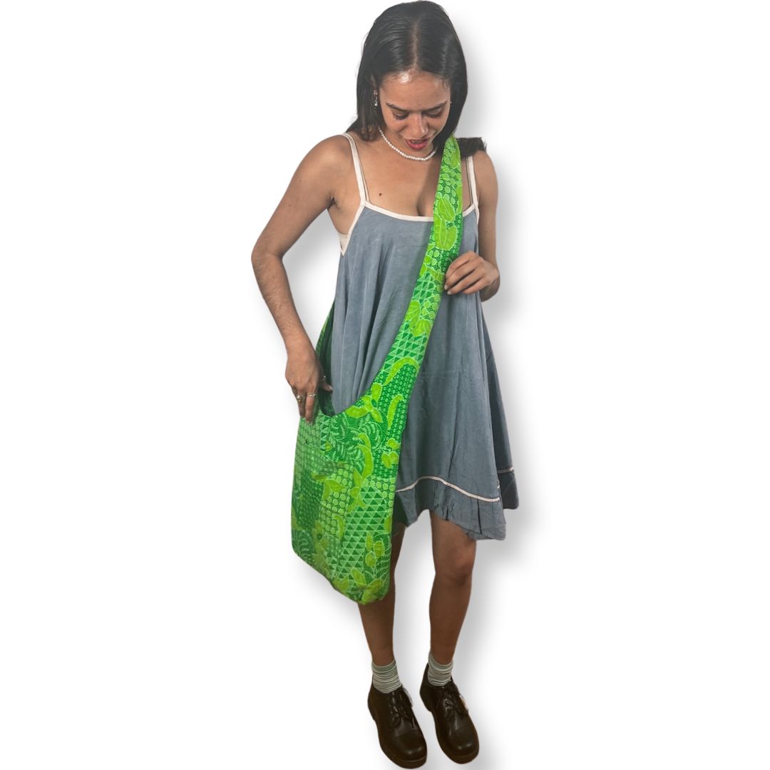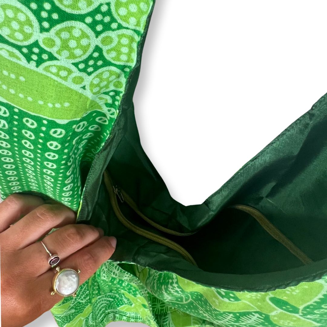 This Bag is made from 100% cotton fabric. Fully Lined inside featuring an internal zippered pocket and a zipper so you can close the bag completely. Comfortable to wear both over the shoulder or across the body. The dimensions of this bag make it incredibly functional so you can easily hold and support an A4 Folder.
