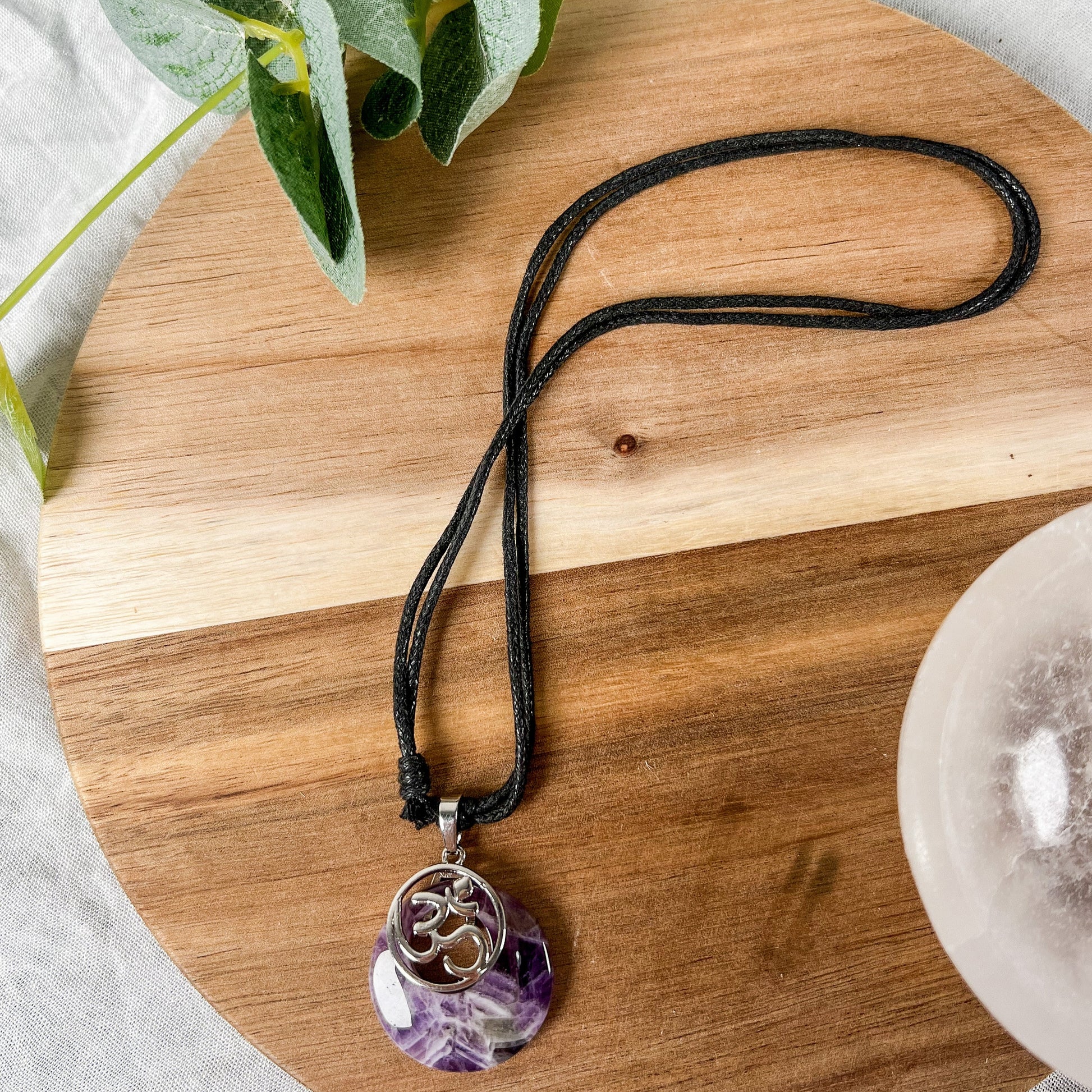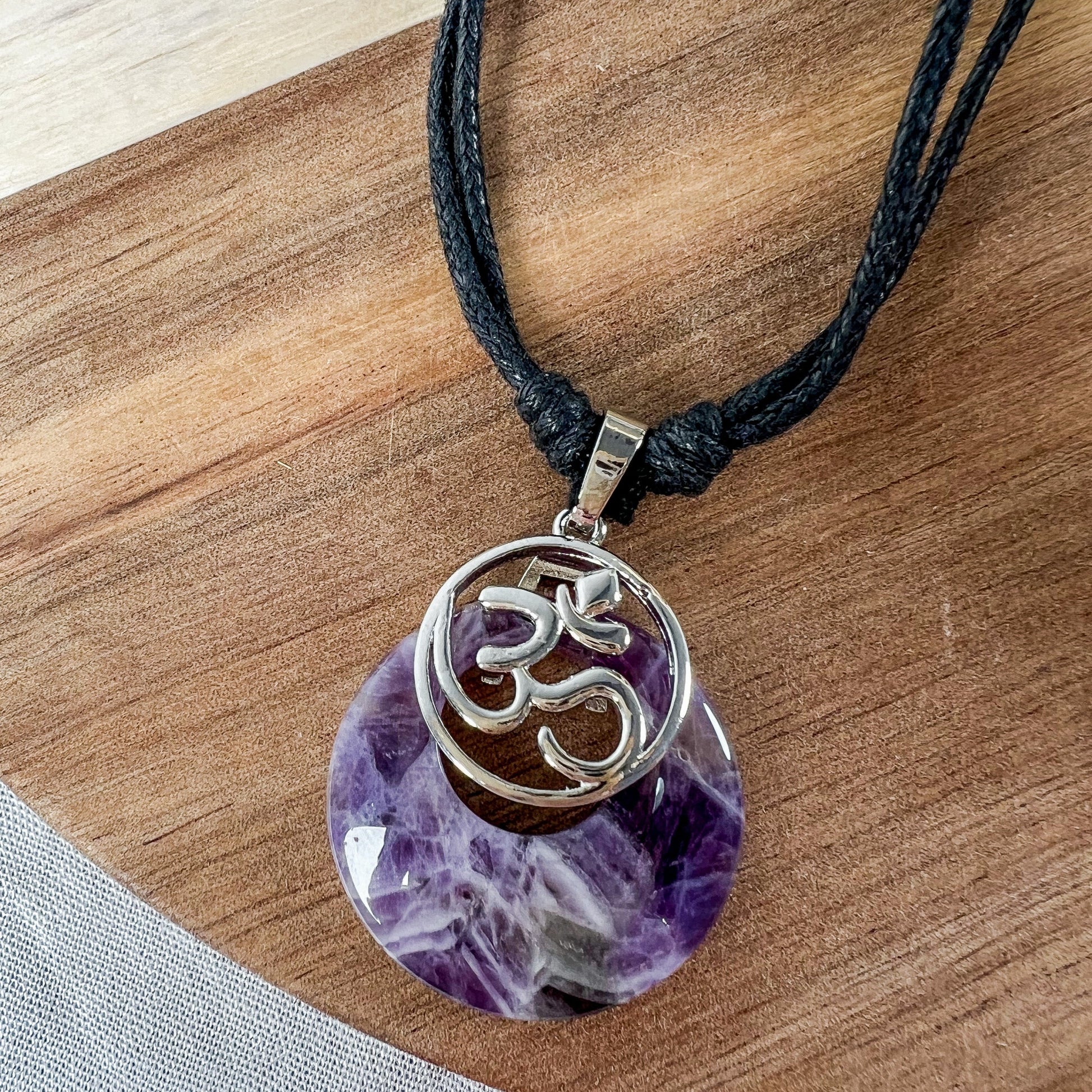 Wear a divine symbol of power around your neck with our Amethyst Ohm Necklace. This unique gemstone piece features an ohm pendant, said to represent complete balance and harmony. You'll love its spiritual symbolism and amethyst sparkle! Find your inner zen and make a statement!