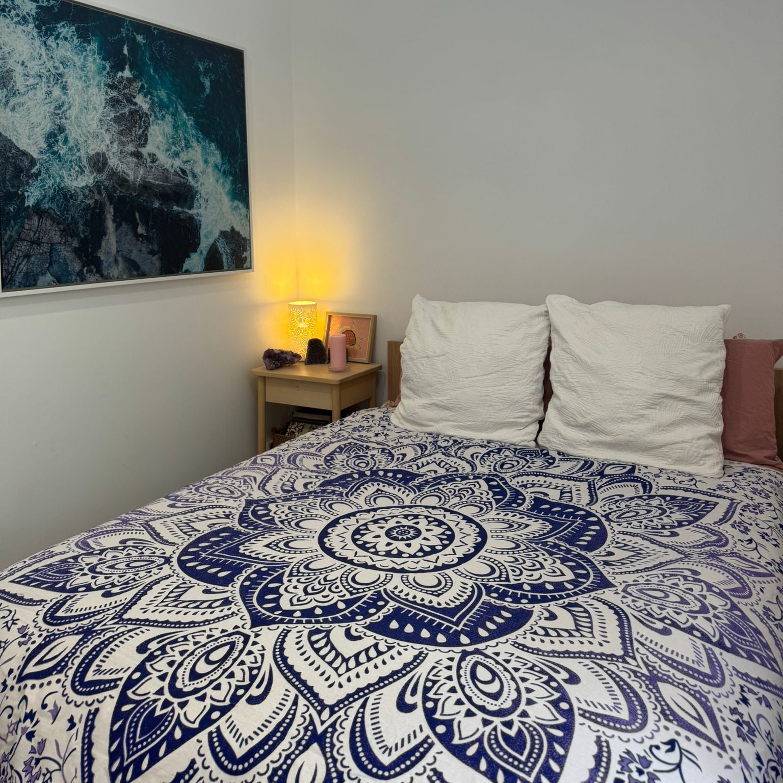Made from Cotton, tapestries can be used as a wall hanging, a bed or couch cover, a table cloth or even a beach blanket. Size: Approx 2.5 metres x 2.75 metres. Cold machine wash. Note: This item will fade in direct sunlight and colours may vary as its a hand made item.