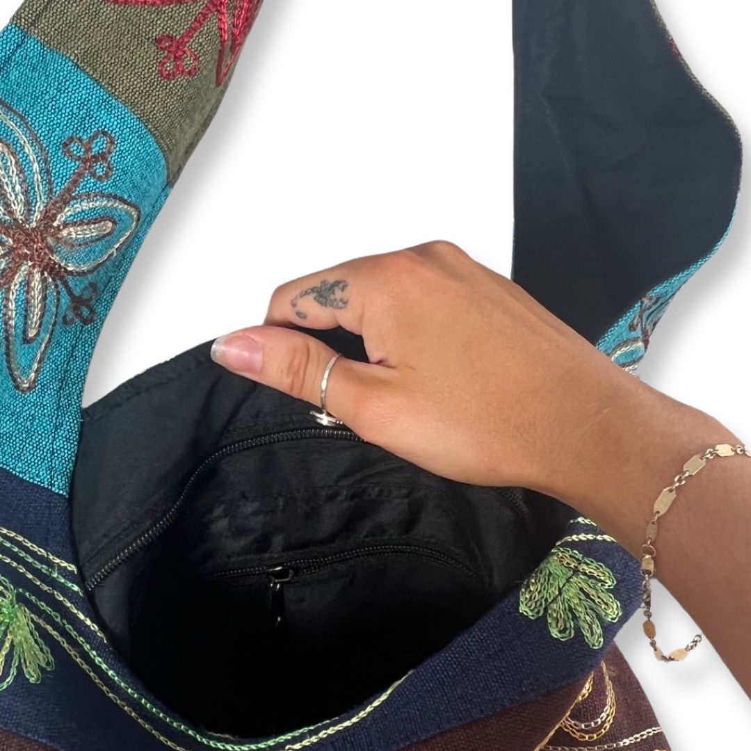 This Bag is made from 100% cotton fabric. Fully Lined inside featuring an internal zippered pocket and a zipper so you can close the bag completely. Comfortable to wear both over the shoulder or across the body. The dimensions of this bag make it incredibly functional so you can easily hold and support an A4 Folder.