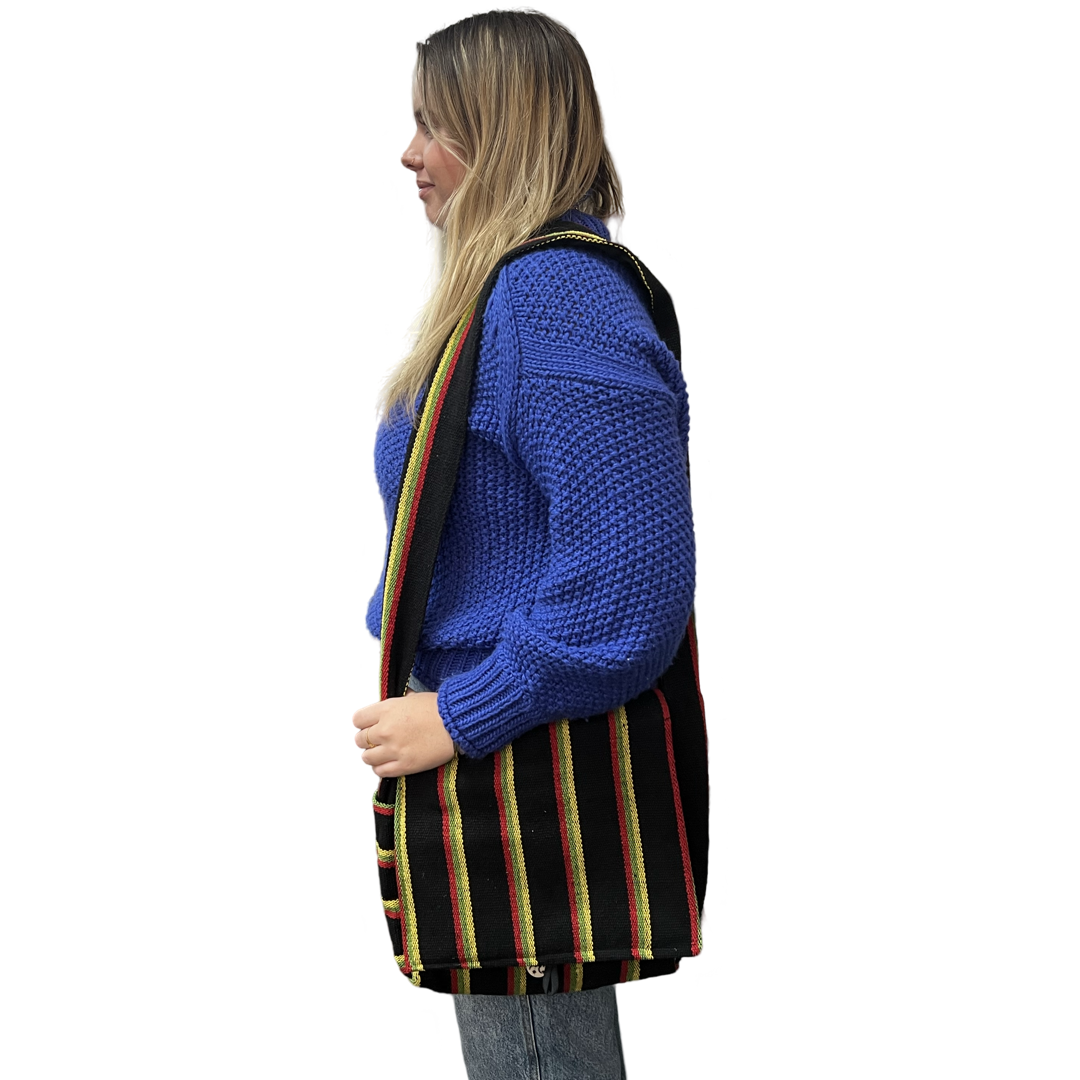 Sway into style with our quirky Cotton Sahara Shoulder Bag. Handmade in Nepal with 100% cotton, this bag is both eye-catching and durable. Perfect for a day out, it's functional and fashionable. Grab yours today!