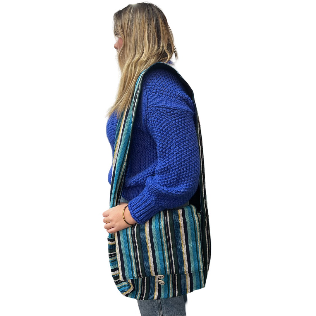 Sway into style with our quirky Cotton Sahara Shoulder Bag. Handmade in Nepal with 100% cotton, this bag is both eye-catching and durable. Perfect for a day out, it's functional and fashionable. Grab yours today!