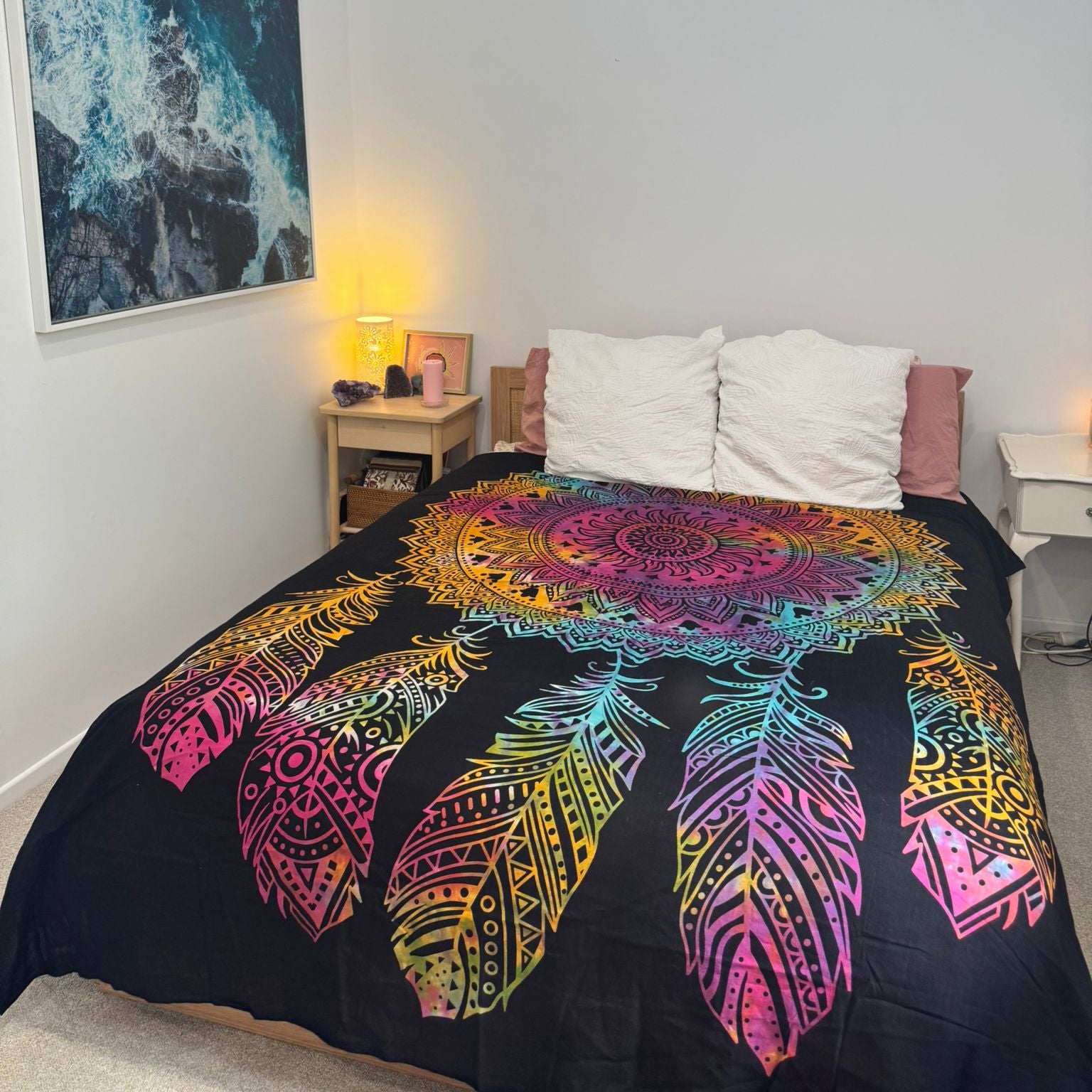 Made from Cotton, tapestries can be used as a wall hanging, a bed or couch cover, a table cloth or even a beach blanket. Size: Approx 2.5 metres x 2.75 metres. Cold machine wash. Note: This item will fade in direct sunlight and colours may vary as its a hand made item.