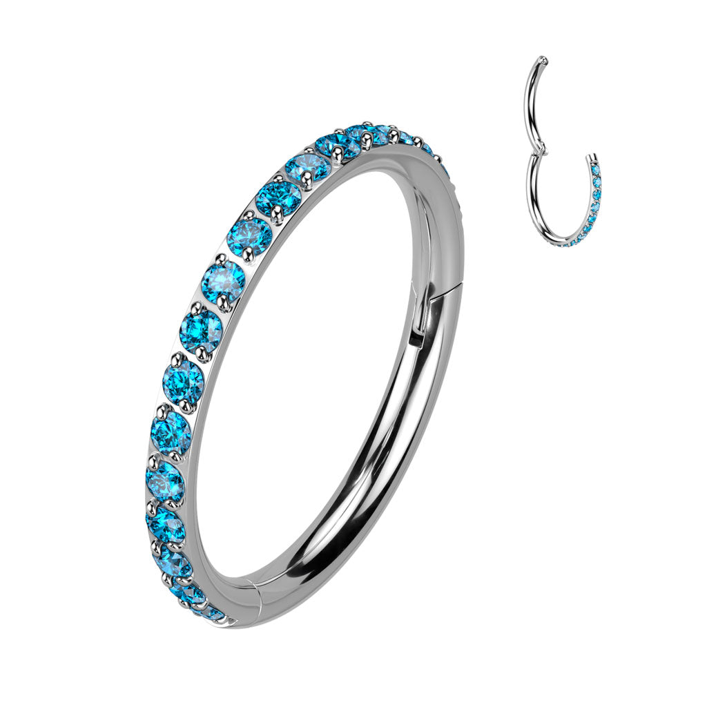 Experience the ultimate combination of style and durability with our Blue Crystal Surgical Steel Hoop. Made with high-quality surgical steel, this clicker is not only hypoallergenic but also features a stunning blue crystal for added flair. Elevate your look with confidence and comfort.